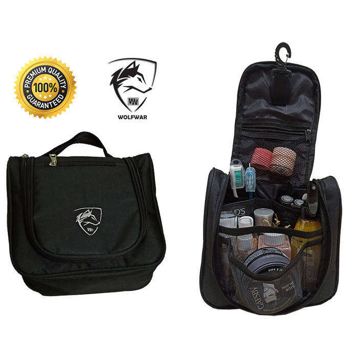 Toiletries bag Material : Polyester Size (L x H x H) : 19 x 19 x 10 cm Are you confused about storing toiletries while traveling or traveling? Just use a toiletries bag. By using this bag toiletries such as soap, shampoo, toothbrush, will be stored safely and neatly in one place. Not only to store toiletries, you can also store your various cosmetics here. All your body care products are neatly stored and no longer messy. Plus wolfwar toiletries can be hung in the bathroom, making it easier for you when you want to use it Your best quailty bag