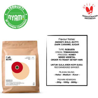 Thank you Toppers for supporting us and making us one of the NYAM products in Tokped! With that, we will hold a special promo for you with a discount price for our temanggung robusta coffee beans that are freshly roasted every day! The discount is very attractive! limited time only! From the normal price of Rp.25,000 for the 250g size, it is now only Rp.18,000!!!! Only for the period from October 2, 2020 to October 4, 2020, guys! And also don't forget to support and vote for us as your choice! Thank you very much! #supportus #supportkopilokal #supportIndobevmo #banggabuatanIndonesia #kopiEsKopiSusu #KopiRobustaSusuGulaAren #RobustaItuEnak #kopiIndonesia ! Vote for us below! Every vote counts for us! https://tokopedia.link/D0ZcEDsjS9 https://tokopedia.link/D0ZcEDsjS9 Hurry up guys!! Recipe Link on our youtube channel! https://www.youtube.com/watch?v=QpQrtCWbm9w PREMIUM QUALITY, CONSISTENCY AND GUARANTEED PRICE. ROBUSTA ESPRESSO BLEND FOR COFFEE SHOPS OR MAKE ICED COFFEE MILK, VIETNAM DRIP ETC. COFFEE BEANS ARE SORTED WELL TO GUARANTEE QUALITY. IT CANNOT BE DELIVERED ON THE SAME DAY BECAUSE IT HAS TO BE ROASTED FIRST. THE FASTEST PROCESS IS 1 DAY BEFORE THE NEXT DAY. SO DELIVERY H+1 AFTER THE ORDER IS RECEIVED. TYPE: ROBUSTA ORIGIN: TEMANGGUNG PROCESS: HONEY MIXED VARIETAL ROAST DATE: FRESH FROM ORDER TASTING NOTES: SMOKEY, BOLD, NUTTY, LOW ACIDITY, CARAMELISED BROWN SUGAR. SUITABLE FOR MILK COFFEE PALM SUGAR. HIGHLY RECOMMENDED. FOR MILL SIZES, YOU CAN SEE IN THE GUIDE PICTURE OR: ROUGH GRINDING | COARSE - FOR FRENCH PRESS, COLD BREW. MEDIUM GRINDING | MEDIUM - FOR AEROPRESS, V60, KALITA, DRIP, SYPHON. FINE GRINDING | FINE - FOR MOKAPOT, TURKISH, FIRE SHIP STYLE.