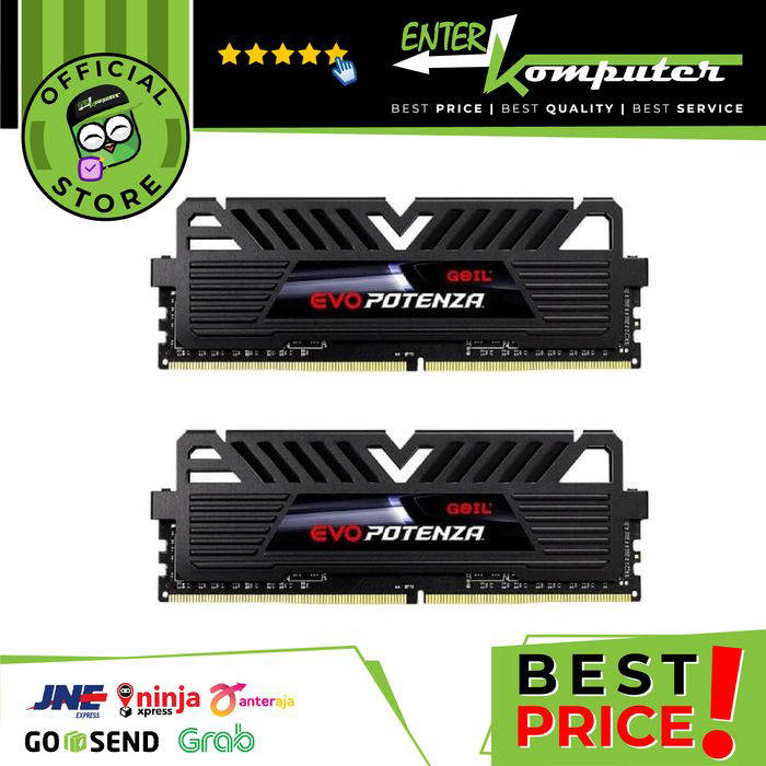 Note: + Check stock before ordering (Limited Availability) + Images are for illustration only, product versions may differ depending on vendor policies, but do not reduce product specifications and functions + Request color, size etc. MUST be included in the description when ordering. If not, then we send the unit randomly + Weight listed NOT including wooden pack and insurance, Without wooden packing & insurance, all shipping risks are borne by the BUYER SKU : 156903 Product Name : GEIL DDR4 EVO POTENZA PC21330 2666MHz Dual Channel 16GB (2x8GB) 19-19-19-43 GPB416GB2666C19DC Brand : Geil Series : Evo Potenza Capacity : 16GB (2 x 8GB) Type : 288-pin DDR4 DIMM Speed : DDR4 PC21300 (2666MHz) Cas Latency : CL19 Voltage : 1.2V Timing : 19-19-19-43 Warranty : Lifetime Add an SSD to optimize your PC's performance. https://www.tokopedia.com/enterkomputer/ssd-klevv-ssd-neo-n400-120gb-ssd-120gb or you can check our SSD storefront https://www.tokopedia.com/enterkomputer/etalase/ssd Official Contact : Web: http://www•entercomputer•com Youtube review: https://www•youtube•com/Ulasanid Web review: http://ulasan•id/