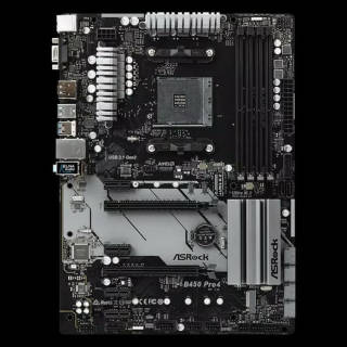 Unique Feature ASRock USB 3.1 Gen2 - ASRock USB 3.1 Gen2 Type-A Port (10 Gb/s) - ASRock USB 3.1 Gen2 Type-C Port (10 Gb/s) ASRock Super Alloy - Premium Power Choke - Sapphire Black PCB - High Density Glass Fabric PCB - 2oz Copper PCB ASRock Ultra M.2 (PCIe Gen3 x4) ASRock Full Spike Protection (for all USB, Audio, LAN Ports) ASRock Live Update & APP Shop Cpu - AMD AM4 Socket - Digi Power design - 9 Power Phase design - Supports 105W Water Cooling (Pinnacle Ridge); Supports 95W Water Cooling (Summit Ridge); Supports 65W Water Cooling (Raven Ridge) Chipset - AMD Promontory B450 Memory - Dual Channel DDR4 Memory Technology - 4 x DDR4 DIMM Slots - AMD Ryzen series CPUs (Pinnacle Ridge) support DDR4 3200+(OC) / 2933/2667/2400/2133 ECC & non-ECC, un-buffered memory* - AMD Ryzen series CPUs (Summit Ridge) support DDR4 3200+(OC) / 2933(OC) / 2667/2400/2133 ECC & non-ECC, un-buffered memory* - AMD Ryzen series CPUs (Raven Ridge) support DDR4 3200+(OC) / 2933(OC) / 2667/2400/2133 non-ECC, un-buffered memory* - Max, i'm not going to be capacity of system memory: 64GB** - 15μ Gold Contact in DIMM Slots Bios - 128Mb AMI UEFI Legal BIOS with multilingual GUI support - Supports "Plug and Play" - ACPI 5.1 compliance wake up events - Supports jumperfree - SMBIOS 2.3 support - DRAM Voltage multi-adjustment Graphics - Integrated AMD Radeon™ Vega Series Graphics in Ryzen Series APU* - DirectX 12, Pixel Shader 5.0 - Max, i'm not going to be shared memory 2GB - Three graphics output options: D-Sub, HDMI and DisplayPort 1.2 - Supports Triple Monitor - Supports HDMI with max. resolution up to 4K x 2K (4096x2160) @ 24Hz / (3840x2160) @ 30Hz - Supports DisplayPort 1.2 with max. resolution up to 4K x 2K (4096x2160) @ 60Hz - Supports D-Sub with max. resolution up to 1920x1200 @ 60Hz