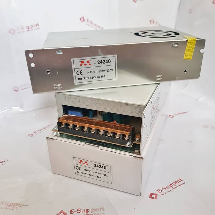 Universal 24V 10A Power Supply for CCTV, LEDs, etc. Transformer switching from 220V AC input to DC 24V. No warranty but before sending we've tested ok
