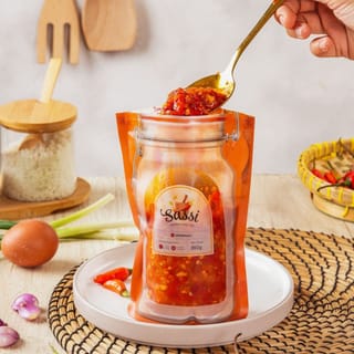 SAMBAL SASSI Balado is a ready-to-eat BALADO chili sauce! Our best seller! This chili sauce can be created with a variety of cooking menus for home. Check Instagram for recipe ideas for your family. Sassi sambal balado contains sour, sweet, and savory flavors. Available in 2 variants: - Original/mild = not spicy - Super Puedes = spicy level 4/5 Damage during delivery is not our responsibility (damage due to courier handling). We will try our best to neatly wrap all orders with double-layer bubble wrap and cardboard. It is recommended to choose next day (1 day)/ Instant/ Same day courrier if possible. The farthest delivery and safe delivery in Jayapura Orders placed above 11.00 am are sent on D+1 Shipping from Kelapa Gading, North Jakarta Sassi is suitable for serving with the family. Delicious, Fast, Economical, and Hygienic. Halal (No pork, no lard) Hygienic production Fresh & quality ingredients How to store: Always store it in the REFRIGERATOR/ FREEZER as soon as it arrives (If you don't want to open it for a long time). And after opening, it must be stored in the refrigerator/freezer immediately. Resistance: 2 months in the refrigerator 6 months in the freezer Packaging/net weight 350gr (400gr including packaging)
