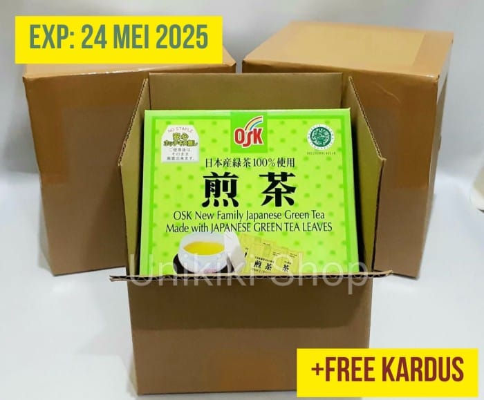 It's time to drink a healthy drink by enjoying the original green tea flavor image from Japan in the morning and evening. EXPIRED DATE May 24, 2025 *** HAS RECEIVED A HALAL LABEL FROM MUI. BPOM RI ML 868110002111 Purchase link : https://www.tokopedia.com/unikiki/teh-hijau-green-tea-jepang-osk-japanese-green-tea-50-sachet Complimentary Extra Tea Box With the addition of extra tea boxes (new cardboard is ordered specifically for tea packaging, not used cardboard) makes the packing very safe so that it does not damage the tea box and so it is also very suitable if tea is used as a souvenir or gift. Product Description 100% Japanese Green Tea Leaves OSK Japanese Green Tea is beneficial for: -Reduce the risk of heart disease and colorectal cancer -Reduces cholesterol and blood pressure Caffeine and theanin create brain relaxation, reduce depression and stress -Its theanin content increases concentration -Boosts metabolism and helps with weight loss -Epigallocatechin (EGC) stimulates key enzymes that promote bone growth and strengthening. -Theanine boosts immunity to colds and flu Netto : 50 sachets x 2 g, Non Staple Manufactured By: ODANI KOKUFUN COMPANY LTD, Japan WE ONLY SELL ORIGINAL PRODUCTS. Please pay attention to how to read the expiration date on OSK Japanese Green Tea products: YEAR/MONTH/DATE. Thank you. So, if the product says 2018.04.27, it means that the product has an expiration date: 27 Apr 2018.