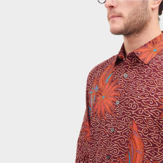 Odza Classic Batik Shirt Kembang Megamendung Merah - Red, L