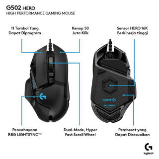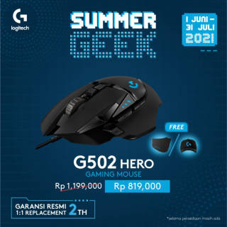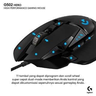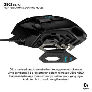 Logitech Indonesia 2-year OFFICIAL WARRANTY (as in packaging) packaging and notes must be included in the claim time Sorry, we do not accept complaints (wrong item, physical defects) if there is no unboxing video :) Technical Specifications Search -Sensor: HERO' -Resolution: 100 ''" 25,000 dpi -Zero smoothing/acceleration/filtering - I'm not. Acceleration: > 40 G2 - I'm not. Speed: > 400 IPS2 Neighbors -USB data format: 16 bit/axis -REPORT RATE USB: 1,000 Hz (1 ms) -Microprocessor: 32-bit ARM Durability -Home button: 50 million clicks -PTFE base: 250 kilometers2 Other features -Onboard memory: 5 profiles -LIGHTSYNC RGB: 1 zone -Braided cable Physical specifications -Height: 132 mm -Width: 75 mm -Thickness: 40 mm -Weight: 121 g, mouse only -Optional extra weight: up to 18 g (5x3.6 g) -Cable length: 2.10 m System Requirements -Windows" 7 or later -macOS 10.11 or later -Chrome OS' -USB port Packaging Content -G502 HERO Gaming Mouse -Optional 5x 3.6 g weight -User documentation Goods that have been purchased and received, if there is damage can only be exchanged new and non-refundable (unless the item is empty). Free merchandise while supplies last.