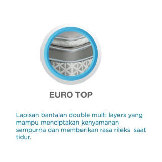 Feel : Tender Height : 28 cm Warranty Per : 10 Years Specifications: • Couple Comfort Spring : vertically arranged spring to dampen shocks • Double Guard : Steel wire circuit to strengthen each side of the mattress • Extra Plush : Extra padded foam coating for comfort during sleep • Euro Top : Multi layers for mattress feel perfection Free: • Bed only : The UK. 100x200, 120x200 : 1 pillow The UK. 160x200, 180x200, 200x200 : 2 pillows • Full Set : The UK. 100x200, 120x200 : 1 pillow and 1 roll The UK. 160x200, 180x200, 200x200 : 2 pillows and 2 bolsters NOTE : • Mattress motifs are subject to change • Delivery of 5-7 business days for Greater Jakarta, for out-of-town 7-10 business days • Please provide the active mobile number for delivery confirmation. • Make sure the ordered size is correct, as the purchased items cannot be exchanged/returned. • Free shipping only for Jadebek, Bogor Kota, & Tanggerang Kota. For Bogor and Tangerang districts please ask ongkir via chat.