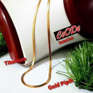 Men's Titanium Necklace And Women's Gold Flat Anti Rust Forever. Fashion Necklaces For Men and Women Titanium Is a Quality Type of Metal. It does not itch on the skin, does not cause allergies for users and will not rust. Necklace length 50cm. Realpict and Ready Stock Products