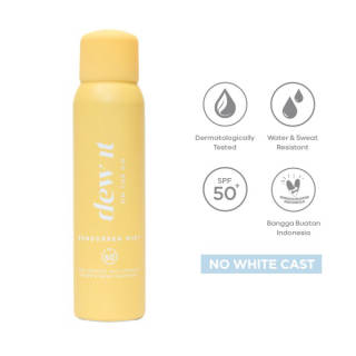 Afraid of sun damage and unwanted sunburns? Meet your hands-free nourishing broad-spectrum transparent sunscreen that leaves your body with a cooling glow. Complete with SPF 50+ and 35% less alcohol, this lightweight, quick absorbing mist is water and sweat resistant providing high-performance protection from UVA, UVB, IRA rays and other harmful effects of sun exposure. Simply spray, sun, DEW it on the go! HOW TO Step 1: Bring your Dew It Sunscreen Mist in your bag Step 2: Shake, open and spray evenly on to your arms, legs and body. Step 3: Apply 20 to 30 minutes before sun exposure for complete UV Protection Step 4: Glow all day with protection! KEY INGREDIENT SPF 50+, Vitamin C, Vitamin E derivative, active anti-oxidants