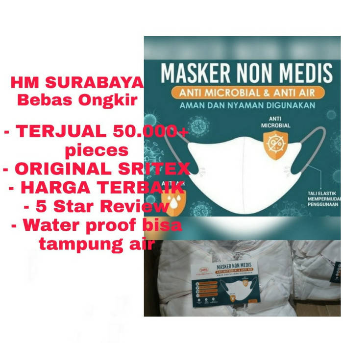 MINIMUM PURCHASE OF 5 MASKS Sritex Original Fabric Mask Ready Gosend Serving Wholesale Large/Online Store & Dropship Attention Purchase 100pcs/above definitely in sritex plastic Purchase 1000 pcs/above in SRITEX CARDBOARD with BARCODE & QUALITY CHECK STAMP Factory quality check: ✓ 1. WATERPROOF / Waterproof outer layer ✓ 2. Clean ✓ 3. Normal Size Adult ✓ 4. Neat Stitching Things like: Color Stitching, thick/thin fiber fabric, wide/thin rubber mask. IT IS NOT STANDARD TO DETERMINE GOODS. Please Flush water one bucket, the outer layer remains waterproof. The outer layer has a more yellow color, due to the side effects of the waterproof coating. Save up to Idr. 100 per piece at least 1,000 pcs contact via chat for more info Washable again 2 layers with fabric and filter Filters for microbes Anti microbial Waterproof READY products are delivered directly to the buyer