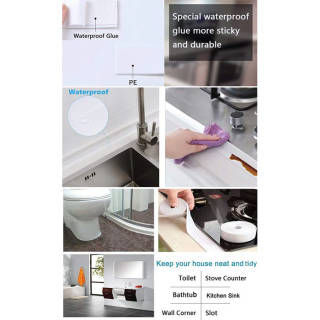 The function of Seal Protection is to close the cracks and elbows furniture, elbows of the bathroom, living room etc., prevent water from entering so as not to be used for small animal nests and reduce corrosive, as well as add beauty value to make the room look neat clean and attractive. Another function is as a door bumper and a sharp table so that children are safe in activities - Safe and durable rubber material - Close the gap - There is already adhesive (just taped to the sill sill door, Ceramic, table or window) - IT'S IMPORTANT! Make sure the part you want to paste with the seal is clean, so that the seal can stick properly. Otherwise, the seal will stick to the dust and the adhesive will not work properly - Length 3.2 m, -Width there is a variant of 2.2 CM or 4 CM - Color white, brown, gray, cream