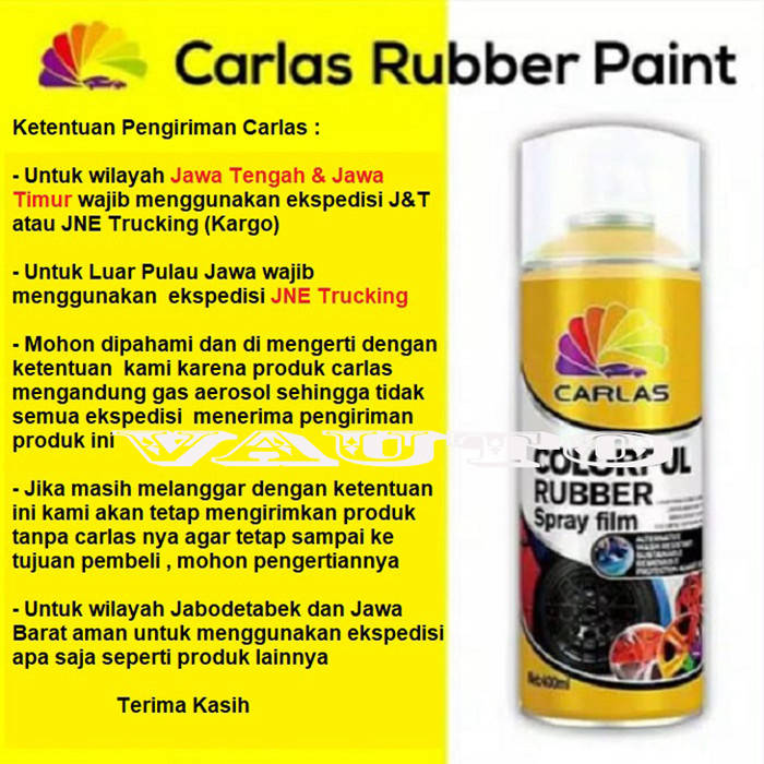 ALL VARIAN (ORIGIN / STANDART COLOUR) DEALS PLEASE READ "TERM & CONDITION" ON OUR NOTES BEFORE SHOPPING SO THAT BUYERS AND SELLERS ALIKE ARE NOT HARMED. We Will Send Color / Size According to The Selected Variation, Not Applicable If Listed In Invoice Defects And Chat Market Pace. No Coumplen No Return CARLAS RUBBER PAINT Carlas rubber paint is the latest paint technology can be peeled off like a sticker when the paint is no longer desired. Carlas rubber paint is an alternative for modification lovers and also to change the atmosphere of automotive colors, gadgets, laptops and other devices with affordable price and the best quality. For CARLAS please note the READY VARIANT, - if you keep an un ready message we will send random according to the ready goods - if you keep an un ready message (in the buyer's note attaching an un ready item) we will send random according to the ready goods - we will send goods ACCORDING TO THE VARIANT YOU ORDERED, NO COMPLAIN, NO RETURN *Terms and Conditions Apply - No Return - Delivery according to variant stipulated in the advertisement (No Complain) *WE DO NOT RECEIVE NOTES IN DISCUSSIONS AND IN MESSAGES *DELIVERY ACCORDING TO VARIANT COLOR OPTIONS IN ADS *NO COMPLAIN NO RETURN * BUY = AGREE *NOTE DELIVERY Jabodetabek Delivery J&T/JNE/Sicepat/NINJA Jabodetabek out-of-date shipments using expedisi other than J&T will be automatically rejected by the admin without confirmation ,,, Thank you...* We send only to Java island for outside java island expected chat first. Reseller / Dropshipper are Welcome. for more details you can pm us. Happy Shopping :)