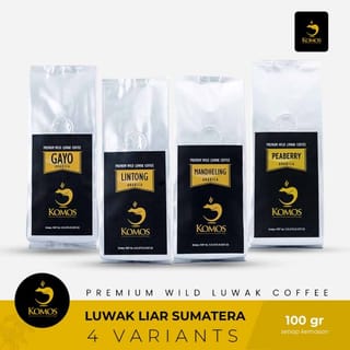 STATUS : READY STOCK .. !! Directly click the Order Button :) Komos Coffee only produces Wild Luwak Coffee that is not cultivated to ensure optimal quality and taste, we have been trusted since 2011 until now. You will get the taste of Authentic Luwak Coffee in every brew and is highly recommended as a Souvenir or Gift for your Guests, Relations, and Business Partners! Why Wild Luwak Coffee Komos? 1. Delicious Aroma and Delicious Taste 2. Safe to be inflated (Mild Acid) 3. Quality and Cleanliness Guaranteed 4. Elegant and Exclusive as a Gift or Gift Specifications: - Netto 100gr/pack each Gayo, Lintong, Mandheling and Peaberry - Wild Mongooses directly from farmers (without intermediaries) - Medium Dark Roast - Manual Pick Bean - Ground Coffee ( powder ), if you need Roasted Beans please leave a message. FRESH ROASTED COFFEE BEAN :)