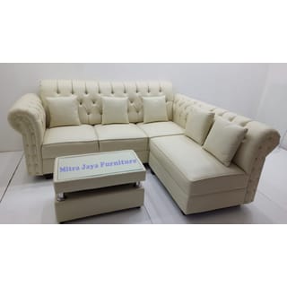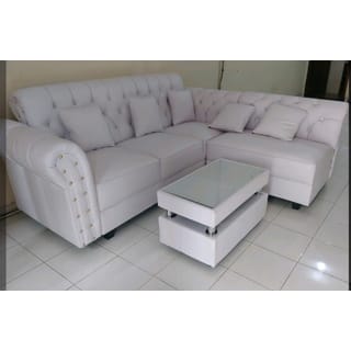 FREE SHIPPING !! PROMO SWISS L SOFA FULL BUTTON + GUEST TABLE