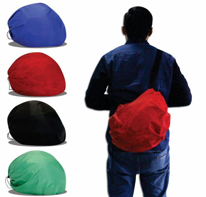 Waterproof Helmet Bag Cover Slingbag Helmet Cover Slingbag by FUNCOVER Helmet cover to protect the helmet from water, dust, sun heat, and scratches. It can be carried as a sling bag and hung on a motorcycle. It has a smooth lining on the inside. Open and close using a stopper strap. FEATURES : - Waterproof - Strap length can be adjusted - Can be carried as a slingbag - Can be hung on a motorcycle SIZE : - All size (enough for half-face, open face, full face) MATERIAL : - Waterproof Milky Parachute - Kur strap - Stopper - Embroidered logo label PURCHASE PACKAGE : - 1 unit Helmet Cover - Strap sling bag - Carrying pouch COLOR OPTIONS : - Black - Blue - Red - People