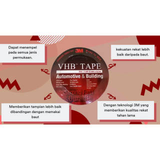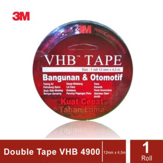 3M™ VHB™ Rp45 Tape is a double tape with two sides adhesive, which is a pressure sensitive adhesive, made of acrylic material and can be used easily for your needs - Easy and fast installation for permanent use - High retardant and long lasting - More attached and pressure sensitive - Invisible adhesive and no need to make holes in the field - With an almost invisible thickness of 1.1mm, it can be used on different types of surfaces - Can replace the use of nuts, bolts, and welding or liquid adhesives: which also reduces drilling, milling, re-polishing, screw mounting, and welding processes until after-process cleaning. - With good pressure absorption, thereby reducing vibration and effects of pressure. - Permanent protection from water, dirt, to moisture Usage Steps - Clean and dry surfaces from oils and dirt - Paste 3M™ VHB™ on objects and remove protective plastic - Paste objects on the surface - Press objects evenly Price for 1 Roll