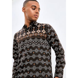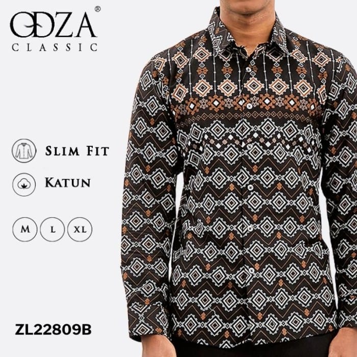 Odza Classic Men's Modern Slimfit Batik Shirt Long Sleeve Baryabo - L