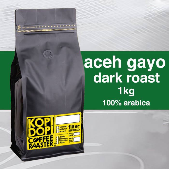 Arabica ACEH GAYO SUMATRA Roasting Profile: Espresso Roast level: DARK+ (French Roast) Process: Full Washed Wet Hulled Garden Height: 1,200-1,500m above sea level Notes: Dark Chocolate, Smoky, Spice, Bold, Low Acidity Net Weight: 1kg With a maturity level resembling a famous coffee shop from the United States with a green logo, this coffee produces a thick and bitter espresso. Suitable for offsetting sweetened syrup and milk so that the coffee taste does not sink. Aftertaste strong spice aroma gives a lasting impression. These coffee beans will be oily after a few days from the date of roasting. This coffee must be FRESH ROAST! Roasting process is only done after the order is entered. Roasted with a local roasting machine made in Jember with the support of Artisan Coffee Roaster software that displays the curve of the temperature movement of coffee beans to ensure a consistent roasting profile. 100gr Packaging Link (not yet available size 100gr) 250gr Packaging Link (not yet available size 250gr) 1kg Packaging Link https://www.tokopedia.com/kopidopi/kopi-arabika-aceh-gayo-starbucks-style-sumatra-dark-italian-roast