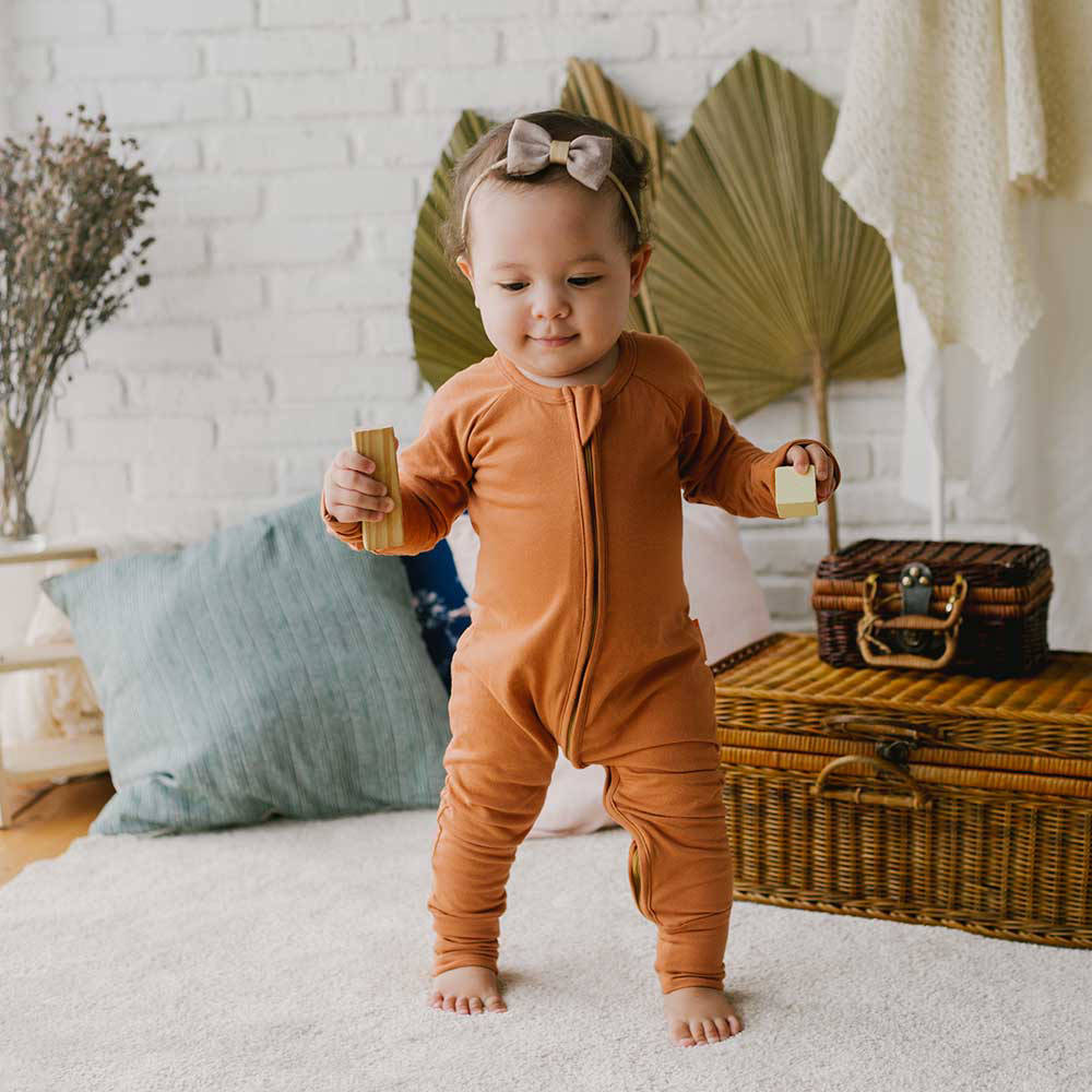 Takoyakids Essentials Azuki Zipper Sleepsuits Caramel 6-12 Month