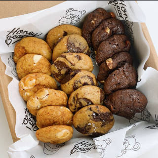 **Important Info** - Baking hours: 10:00am-2:00pm - Delivery hours: 12:00-15:00 (request driver) - Orders before 14:00 are shipped the same day. - Monday's closed. Our cookies are highly recommended already consumed within 2-3 days. Please place it in a meeting container inside or outside the refrigerator. ______ Honeybear's Mixed Cookie Box! Select Variant Size - 10 pcs (max. 2 flavors, 5 each, please write in the desired flavor note) - 18 pcs (6 each) - 24 pcs (8 each) -48 pcs (16 each) Variants of cookies are: - Dark Choc Sea Salt - Choco Almond - Thai Tea White Choc Diameter of one cookie approximately 3.5 cm See photos and other products from Honeybear Bakery on instagram @honeybear_jkt