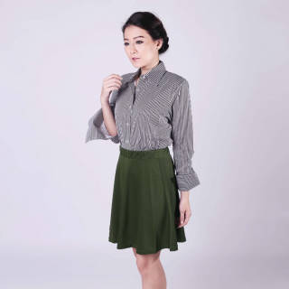 Wedges Midi Flare Skirt Women's Skirt (RK137) - Green Army
