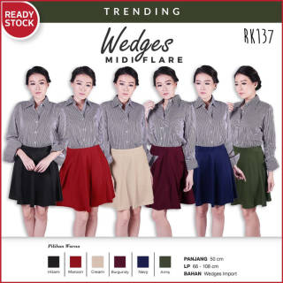 PRICE PROMO !!!! Special Lovers Tokopedia!! Click the favorites button in our store! Normal price Rp 90.000 WEDGES MIDI FLARE (RK137) D : 50 cm LP : 66 - 108 cm Material : Wedges Import Download hi-res pics: https://goo.gl/gro51X