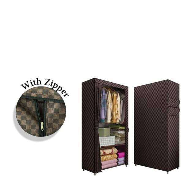 Size : 150 x 70 x 45 cm Material : Iron pipe + non woven fabric Cover : Non woven fabric Can be used to store clothes, complete with 1 hanger. Made of aluminum pipe frame, connector from ABS (thick plastic), and fabric used non woven type. Easy to assemble or disassemble stage. So it's easy to move. Suitable for boarding or contracting. When moving location, stay dismantled, clean up and move.