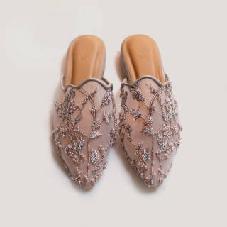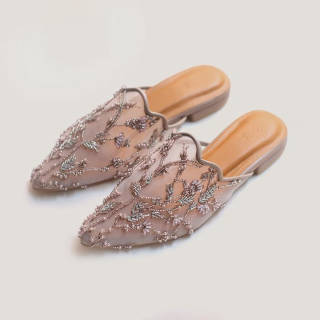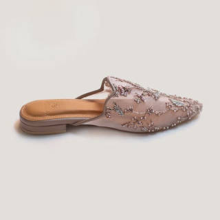 Made of genuine leather combined with embroidered tulle and given a touch of sequins Box Rights 2 CM ( available sizes 36 – 41) Sizing Category : B