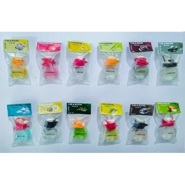 SELECT THE REQUIRED SCENT ACCORDING TO THE CLICK HANGING PERFUME CAR AIR FRESHENER APPLE BOTTLE SHAPE ====================== A. ALWAYS READY Always Ready. We produce ourselves. We always take care of the stock. _________________________________________________________________ B. PRODUCT INFO 1. Apple shape bottle model. 2. Contents: 10ml 3. Durability: 2-3 months (depending on usage) 4. The quality of the scent is very strong because the fragrance comes from France. 5. Plain perfume without brand / Home Made with Imported perfume bottle. 6. 1 kg Load 25 Pcs/ Bottle 7. Variants : - Coffee Black = Balinese coffee -Cappuccino - Green tea -Vanilla - Lemongrass / SEREH -Melon -Apple - Blue Sky -Strawberry -espresso - bubble gum -moccacino - Zwitsbaby Perfume Hanging Coffee scent is the cheapest price for similar models, why is it cheaper??? Because packaging is very simple with only plastic so that it can reduce the cost of making expensive packaging. _________________________________________________________________ C. HOW TO USE 1. Open the plastic packaging. 2. Open the wooden lid and plastic seal. 3. Close again using a wooden lid tightly. 4. Shake the bottle until the perfume wets the lid wood (+- 15 seconds) 5. Hang it on the room / car You will feel the feel of a café in the room / car... Happy trying... _________________________________________________________________ D. PURCHASE OF MANY RESELLERS Our Daily Stock is Always Ready above 20,000pcs, so purchase as much as Any ALWAYS READY & READY TO SHIP RESELLERS ARE WELCOME Purchases above 100pcs please use the Chat feature to get the PRICE SPECIAL from us ;-) _________________________________________________________________