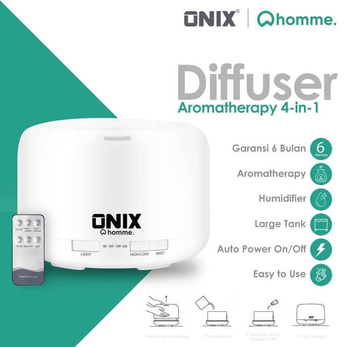 Description of Onix 4 in 1 Aroma Diffuser Electric Humidifier + 7 LED - 500ML This humidifer serves to maintain moisture and can also be used as a aroma therapy by putting a little fragrance in the water. Equipped with 7 led lights that can change color. FEATURES Natural Moisture from The Humidifier This tool will release a water mouisture that keeps the air humid, especially in air-conditioned rooms. It can also use essential oils to create a beautiful scent of space. 7 LED Color This humidifer has 7 led light colors so your room will also be more attractive when this humidifier is turned on. Silent Operation This humidifer is not noisy when used so you can sleep quietly without being disturbed by the noise. PACKAGE CONTENTS Items you can in the product box: 1 x 4 in 1 Aroma Diffuser Electric Humidifier with 7 LEDs 1 x Power Supply 1 x Manual Technical Specifications of 4 in 1 Aroma Diffuser Electrical Humidifier + 7 LEDs Dimension 9 x 12 cm Plastic material