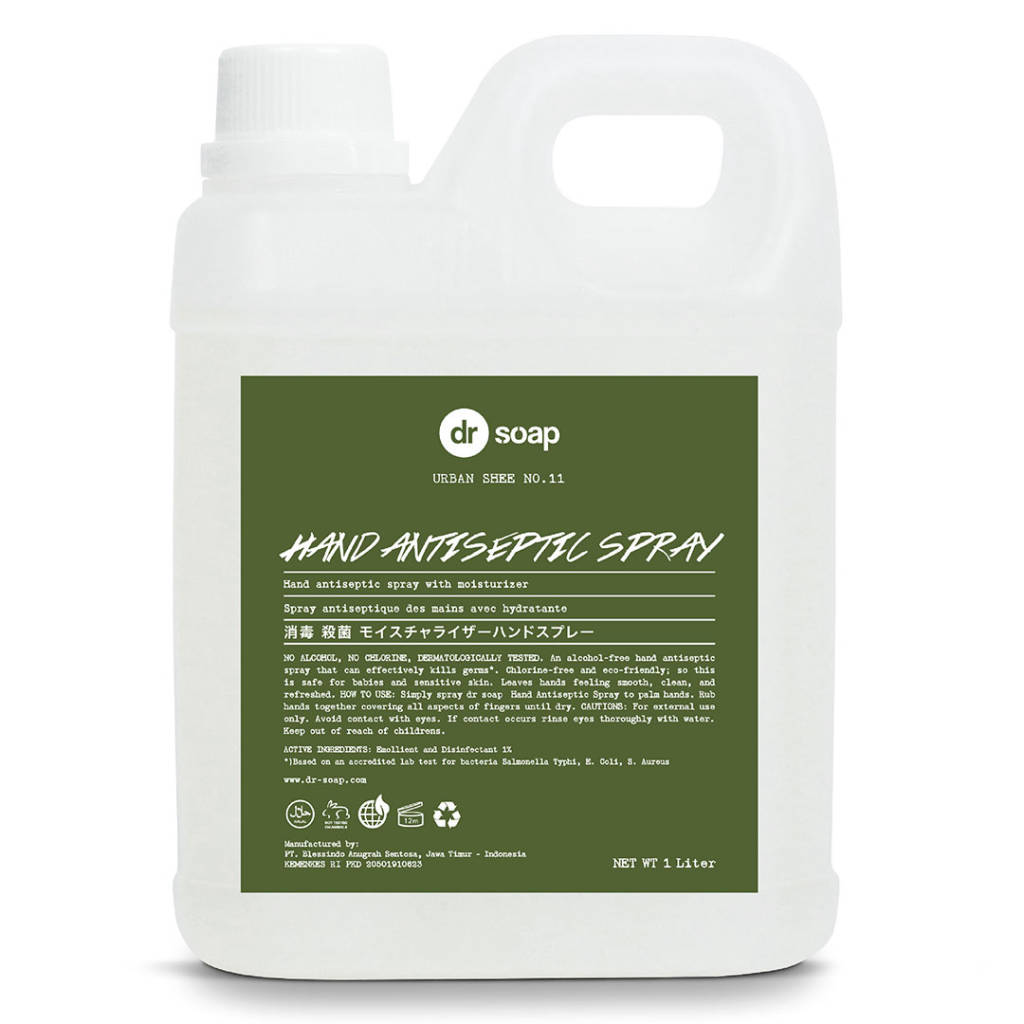 Clean your hands from germs and bacteria that cause disease using dr soap Hand Antiseptic Spray 1L (Urban Shee). This hand antiseptic spray is the first in Indonesia. It has been proven that clinical trials are approved by dermatologists Alcohol-free hand sanitizer that effectively kills germs Comes with an Urban Shee scent Product Specification Product Type: Hand Antiseptic Liquid Packaging: Jerry Can Net Content: 1 liter Scent: Urban Shee Benefit Cleans hands from germs and bacteria that cause disease Excess Chlorine-free and eco-friendly Safe for babies and sensitive skin Hands will feel smooth, clean, and fresh Can be used for hospitals, healthcare, and professional care Dermatology tested, products have been tested under the supervision of a dermatologist (dermatologist, i.e. a dermatologist, hair, and nail specialist) Have gone through several stages of testing on respondents voluntarily Clinical trials are conducted at official and accredited institutions Package Contents 1 jerry can Hand Antiseptic Liquid