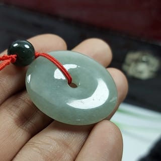 SELLING SPECIAL ORIGINAL JADE DONUT PENDANTS The green grey natural jadeite Burmese jadeite hockey donut coin pendant includes a red necklace. ______________________________ Specifications: - Natural jadeite Jade - Origin Burma - Coin donut pendant model - diameter -/+ 23 mm -Thickness 5.8 mm _____________________________ Special items. Nb: All items in Masterpride are covered by store warranty to guarantee consumer satisfaction. 110% money-back guarantee if the item turns out to be synthetic or fake. Can be assisted in making local certificates by pawnshops or private gri sky and cgl. A trusted lab is not Abal Abal who produces copy certificates. Guaranteed! Please read reviews and testimonials from buyers at the masterpride stall. Original product guarantee. Item ready, unit no negotiation 🙏🙏🙏