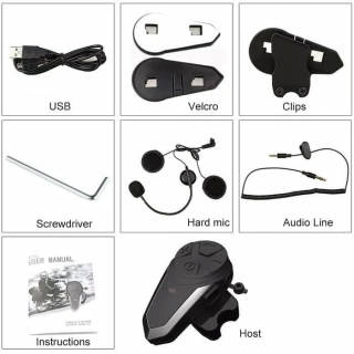 NOTE: Every purchase will be given Free Bubble wrap.. Goods are guaranteed safe from slamming, heat and rain.. Product Warranty 100% refund in case of damage.. So for delivery do not hesitate. There are 2 variants yes: 1. BT-S3 (1 all-package) 2. Headset only (headset only) for conference (ngo concurrent) this product can only be 2 people yes, if more than 2 must replace Bluetooth helmet intercom BT-S3 1000m original New 1 month replacement unit warranty Terms must be full of stars and comments Thx.. -Capable of up to 3 people. -kalo want to convert to action cam (must have mod converter audio jack). -Waterprooff? (yes if it rains lightly, still limited to small splashes, if dyed water or heavy rain is not recommended). - The item is Already Type C (Latest). - Maximum range? 1KM. -Pairing to Sena & v6 can. Specifications Bluetooth version: 3.0 + EDR Frequency: 2.4 GHz supports: A2DP and AVRCP Supported Bluetooth Profile: Free Bluetooth Headset and Hands with Automatic Detection Operating range: up to 10m for mobile phones Battery type: Rechargeable Lithium Polymer 450 mAh Stand by: up to 300hrs Talk time: Phone Intercom up to 10 hours to 8 hours Charging Time: 3 hours Power Adapter: DC5V 500mA descritpion features: can be realized bluetooth helmet headset with helmet headset 800 meters (or 800-1000 meters) meter direct full-duplex intercom; can be reached Bluetooth and mobile phones, intercom calls, stereo music and automatic switching between them; first phone, the call automatically switches to the phone to answer the call, closes automatically after intercom recovery; FM Radio function Package included 1 x Headset clip w/Fastening Screws 1 x Screw driver 1 x USB Cable 1 x User Manual 1 x device