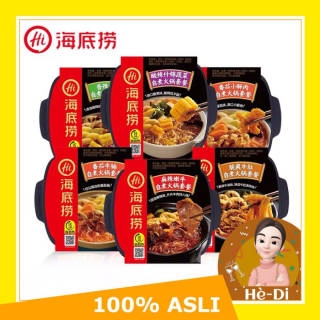 Haidilao Hot Pot Instant Self-Heating Hot Pot . Please reserve the stock in advance, before ordering. . There are 5 flavor variants: - tomato crispy CHICKEN 415gr - tomato brisket 365gr - Mala vegetarian 400gr - beef tender 435gr - crispy tripe 435gr . Storage conditions: Please keep it in a place of normal temperature, cold, ventilated and dry, avoid direct sunlight . How to eat: 1. Open the lid, and place all the ingredients into a transparent bowl on top. 2. Add water slowly until it reaches the water level mark on a transparent bowl (about 300ml) 3. Remove the plastic bag from the heating package, and place the heating package in the black bowl below. (Heating packs generally start heating up after 15 seconds). 4. Add the cold water to the black bowl until it reaches the water level mark, or until it covers 2/3 of the heating pack. PLEASE DO NOT TOUCH THE HEATING PACKAGE AFTER ADDING WATER 5. CAUTION: HEAT Quickly put a transparent bowl over a black bowl, and cover. Wait 12 to 15 minutes until cooked. 6. CAUTION: HOT After 12-15 minutes, open the lid and serve. . Noted: expire period 9-10 months from the production date on the packaging. In accordance with regulations in China, the date listed on the product packaging is not the expiration date but the date of production. . MUST VIDEO PACKAGE OPENING ✅ Without video opening package DOES NOT RECEIVE ANY COMPLAINTS ✅ Record a clear video starting before opening the package until it finishes opening the package ✅ Does not accept videos that after the package is opened are newly re-recorded or the newly repacked package is videoed. For better delivery please add Packing Dus and Bubble. The goods that were sent have been checked in good condition. * damages incurred in shipping are not our responsibility, please claim to the expedition and WE DO NOT RECEIVE ANY RETURN / COMPLAINT