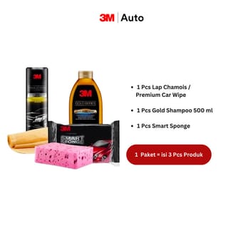 3M Car Wash Savings Package - (1Pc 3M Premium Car Wipe, 1Pc 3M Smart Sponge, 1Pc 3M Car Wash Soap Gold) - 3M Premium Car Wipe, functions to dry and clean after washing without leaving residue. - 3M Smart Sponge, a sponge for car washing with soft, strong & durable quality. - 3M Car Wash Soap Gold Series, a car shampoo to remove dirt completely without causing stains.