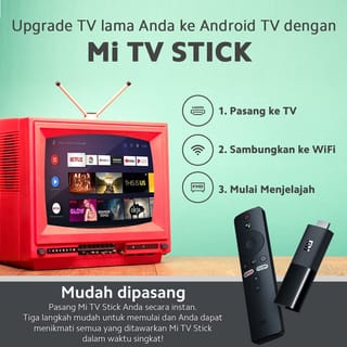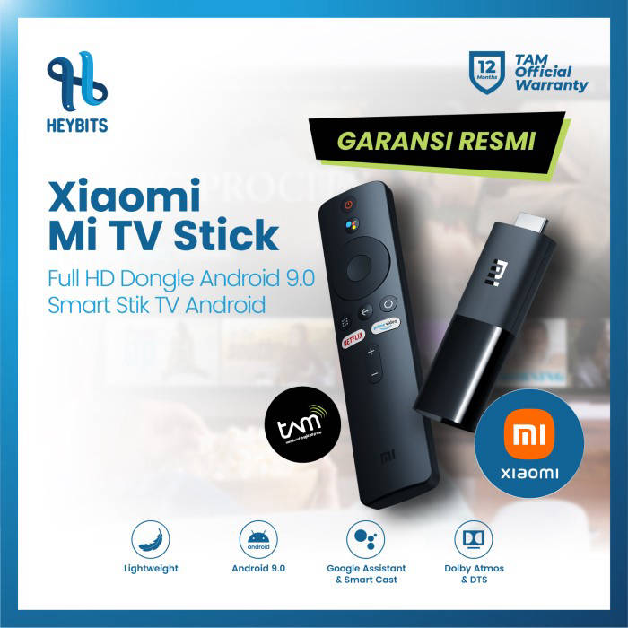 It is better to buy an OFFICIAL product covered by a WARRANTY than an OFFICIAL product that is not covered by a 12-month warranty with a very narrow price difference! For Wifi Extender from the Xiaomi brand, you can check at the following link: https://tokopedia.link/K123C1LTgyb TAM Official Warranty 12 Months We only sell the OFFICIAL WARRANTY (Claims can be made at Xiaomi Service Centers in Indonesia) not the store/distributor warranty. Now comes Sstick Tv Android which will turn your old school TV into an Android Smart TV. No need to worry about your TV being outdated and no need to spend a lot of money to replace a new TV. With this Tv stick, your Tv will become an Android Smart TV that can enjoy the latest Full Channel Broadcasts, Youtube, Netflix and Movies with clean and clear 2K/FHD+/HDR quality. The app is installed and ready to enjoy. You can add apps like games or other apps through playstoreTV. Product Description: It has a built-in Chromecast feature, so you can watch youtube streams or movies from your phone connected to your TV The remote supports with Google Assistant, so you don't have to bother typing and just use the mic Supports Premium Surround Sound multichannel DTS audio HD encoding. The sound is smoother, dynamic, immersive and more realistic. Specifications: Output Resolution: 2K (1080P) / FHD+/ HDR CPU: Quad-core Cortex-A53 / 3+2 Core GPU GPU: ARM Mali-450 WiFi 2.4GHz + 5GHz dual-band WiFi 802.11 a/b/g/n/ac Bluetooth: 4.2 RAM: 1GB Memory: 8GB Interface: HDMI, OTG, Type-C, USB3.0 System: Android 9.0 Decoder: Video decoder: VP9, H.265, H.264, VC-1, MPEG1/2/4, Real8/9/10 Video formats: RM, MOV, VOB, AVI, MKV, TS, WMV, MP4 Audio recorder: DOLBY, DTS Audio formats: MP3, WMA, AAC, Flac, OCG Image decoder: JPG, BMP, GIF, PNG In the Box: Xiaomi Mi TV Stick Voice Remote Control English Manual Usb Cable Adapter HDMI Cable