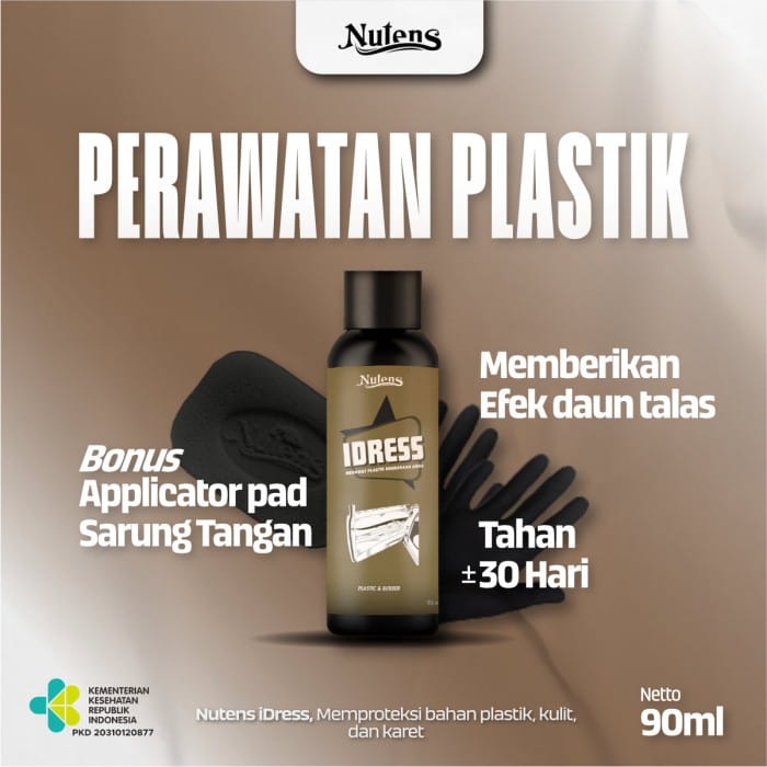 MINISTRY OF HEALTH NO : PKD 20310120877 Nutens Idress functions to protect and moisturize the exterior and interior plastic parts of cars and motorcycles. It can be used for media made of plastic, leather and rubber so that it is not easily dull due to solar oxidation. In contrast to Nutens Blacknut which is more devoted to blackening dull plastic. Nutens Idress is made specifically for treatment so that the applied medium can be protected from the sun's UV rays. Nutens Idress can be applied once a month, it is very suitable for use after the application of Nutens Blacknut (if applied to the exterior). What are the advantages of Nutens Idress? - Already have a permit from the Ministry of Health. - Helps take care of the plastic and car interior so that the color is maintained. - Safe to use for vehicle interior and exterior media. - Provides a glossy effect on the media applied. - Very easy to use. - Economical use can be for more than 5 motorcycles and cars. Idress nutens are excellent for use: 1. Rough plastic on the motorcycle such as dashboard, fender, etc. 2. Rough plastic on the car such as fender trim, wiper gutter and rubber list. 3. Car interior parts made of plastic, leather and rubber such as dashboard, door trim, seats, handrests, headrests etc. Each purchase will get: - 1 Nutens Idress 90ml - 1 Applicator pad - 2pcs Gloves How to use: 1. Use gloves. 2. Pour the idress liquid on the applicator pad. 3. Apply it to your vehicle's plastic media evenly.